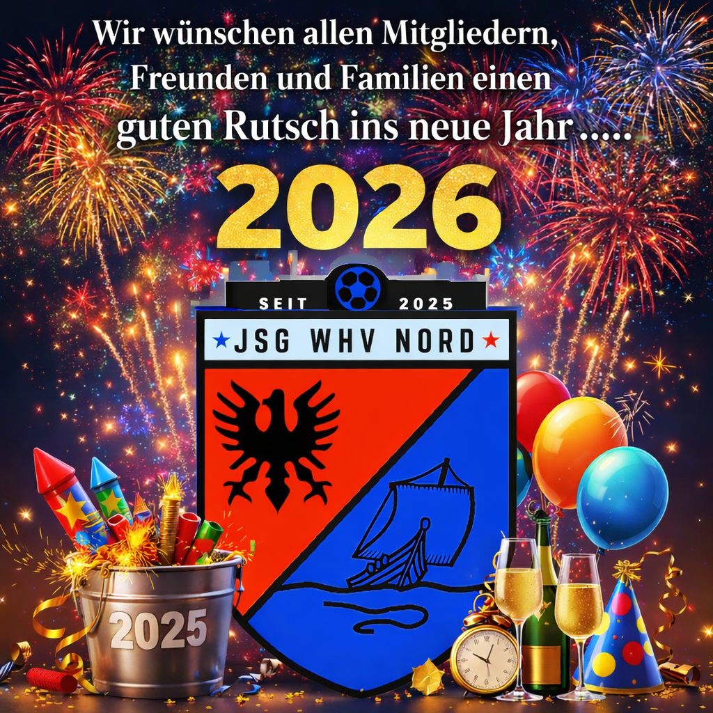 Für das neue Jahr wünschen wir allen Spielern, Trainern, Betreuern, Eltern und Unterstützern der JSG WHV Nord vor allem Gesundheit, Spaß am Fußball und viele Siege – egal ob auf dem Spielberichtsbogen oder im täglichen Training.